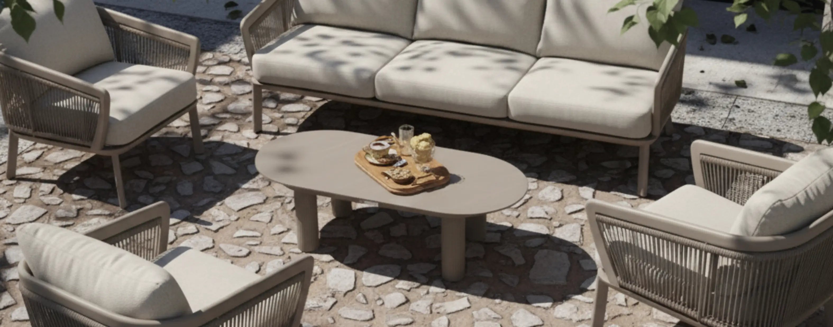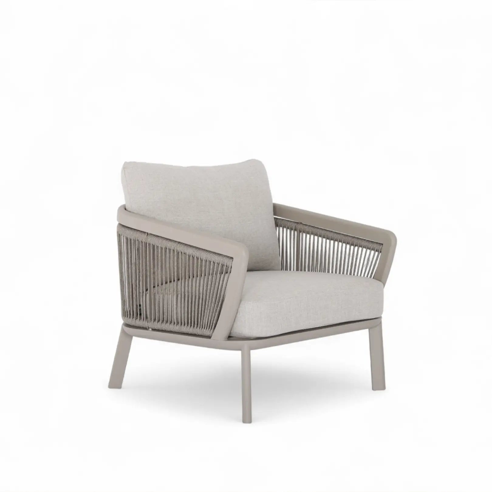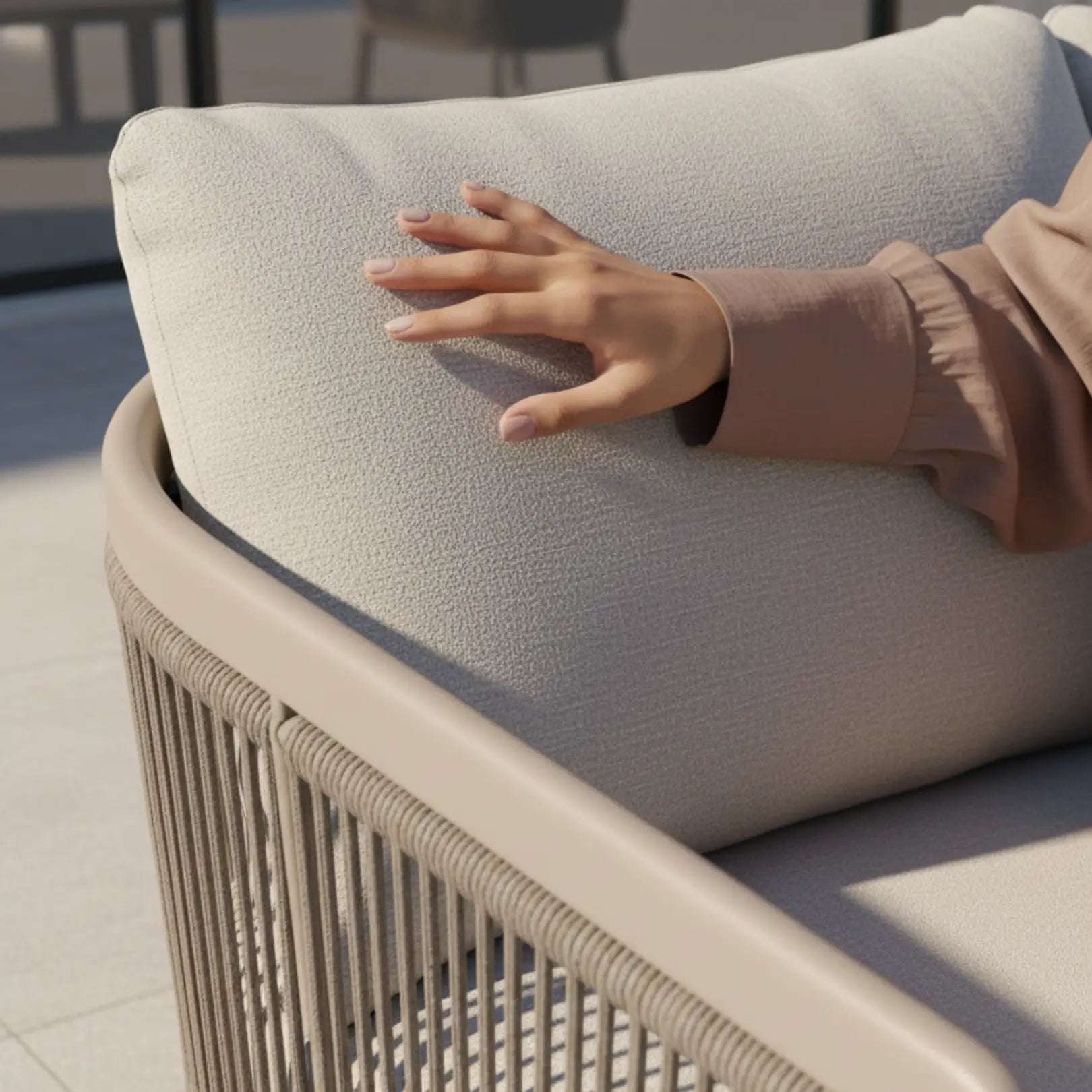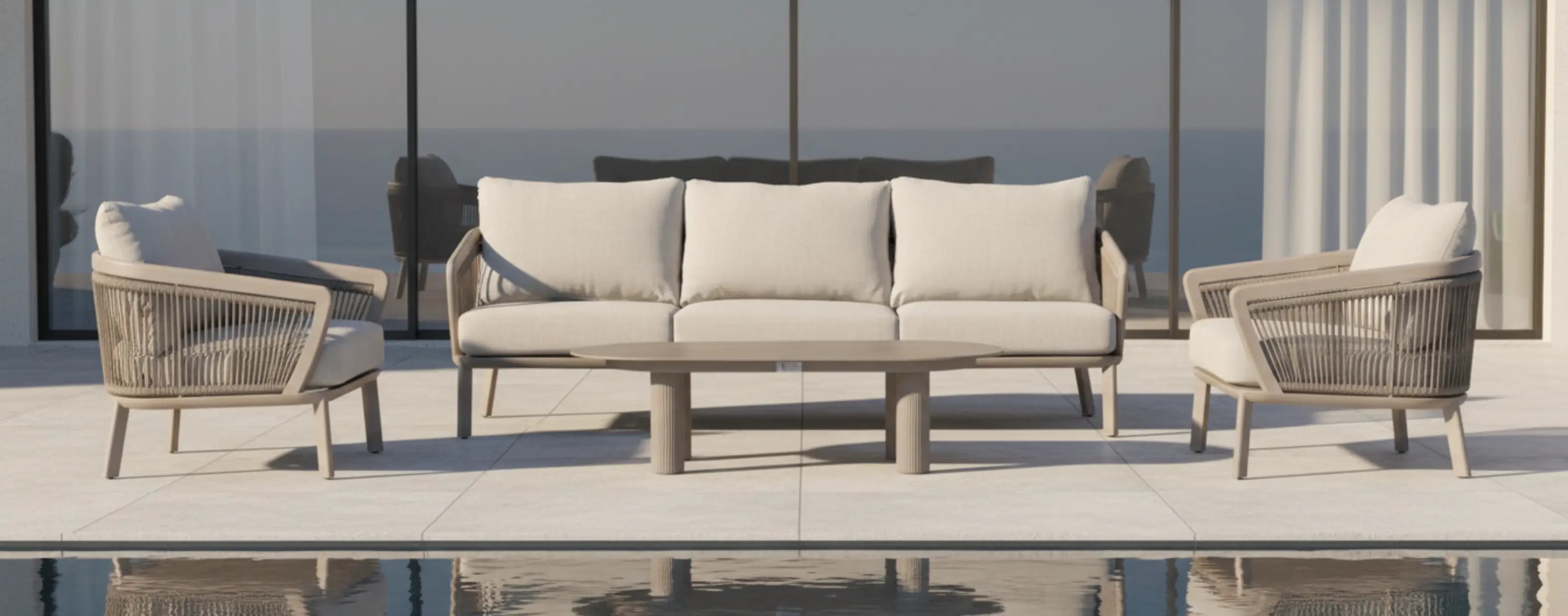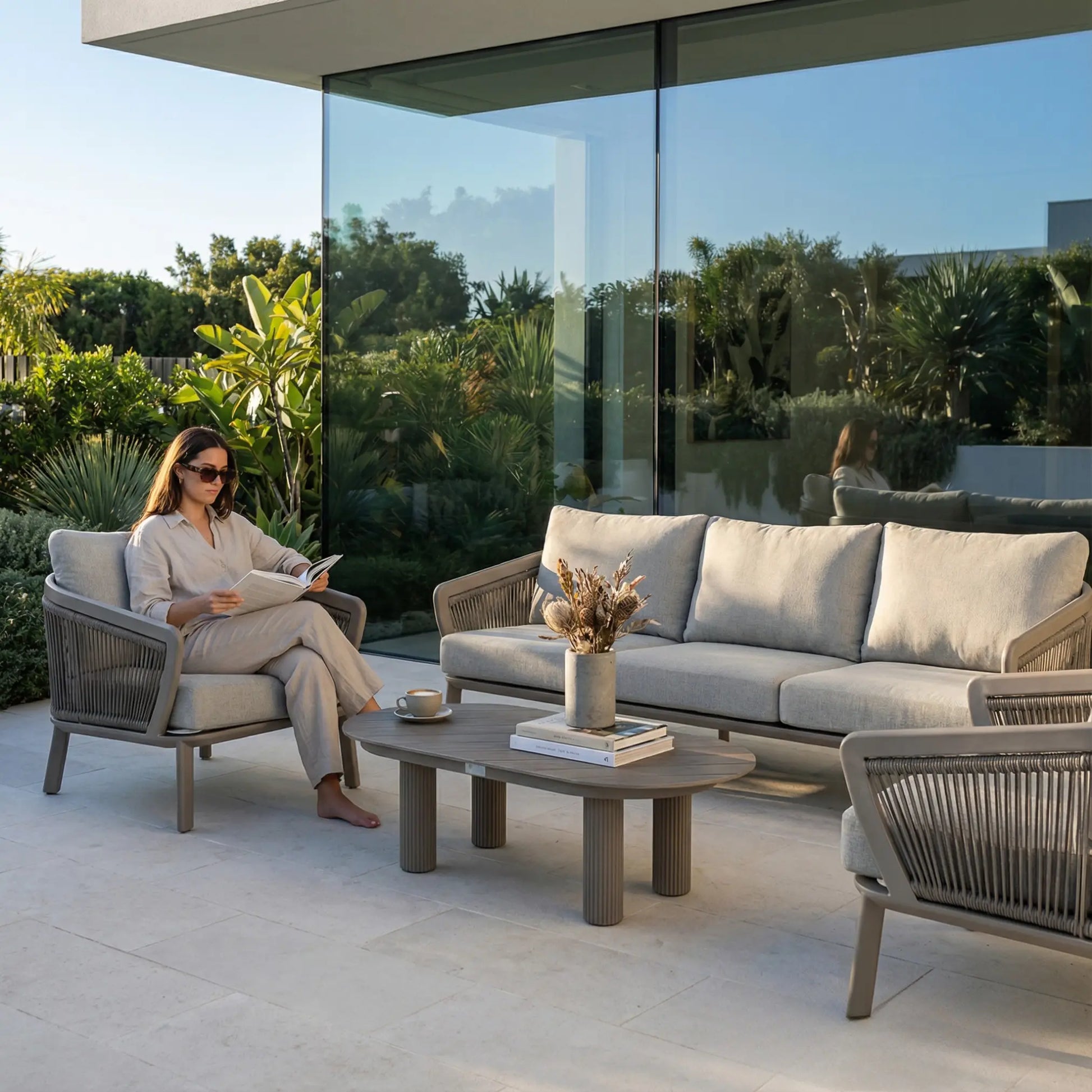 An elegant interplay of sculpted rope weaving and refined proportions, the Barbados Outdoor Set brings a contemporary coastal sensibility to modern outdoor living. With its soft curves, generous cushioning, and elevated material harmony, Barbados creates an atmosphere of effortless luxury.